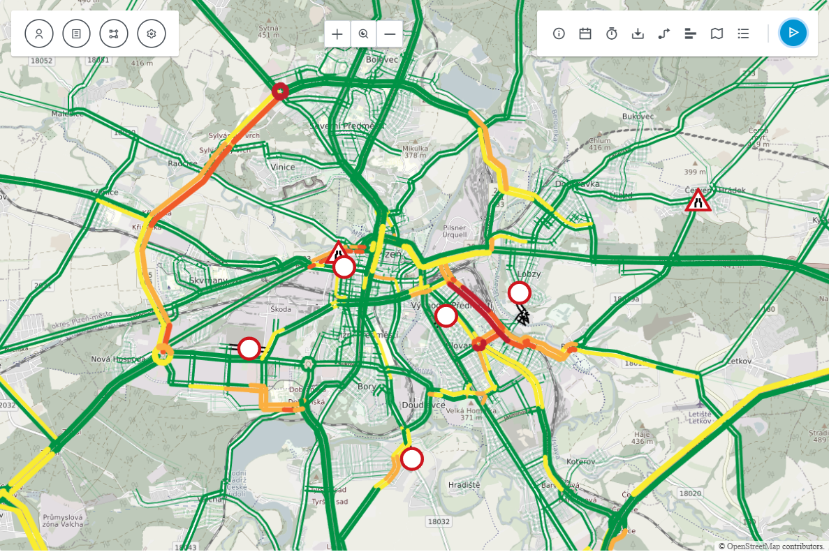 Aplikace intenzita dopravy, která zobrazuje stav dopravy aktuální, minulý a predikuje stav doprav v budoucnu, má v nové verzi nový dopravní model pro simulaci dopravy a celou řadu dalších vylepšení.