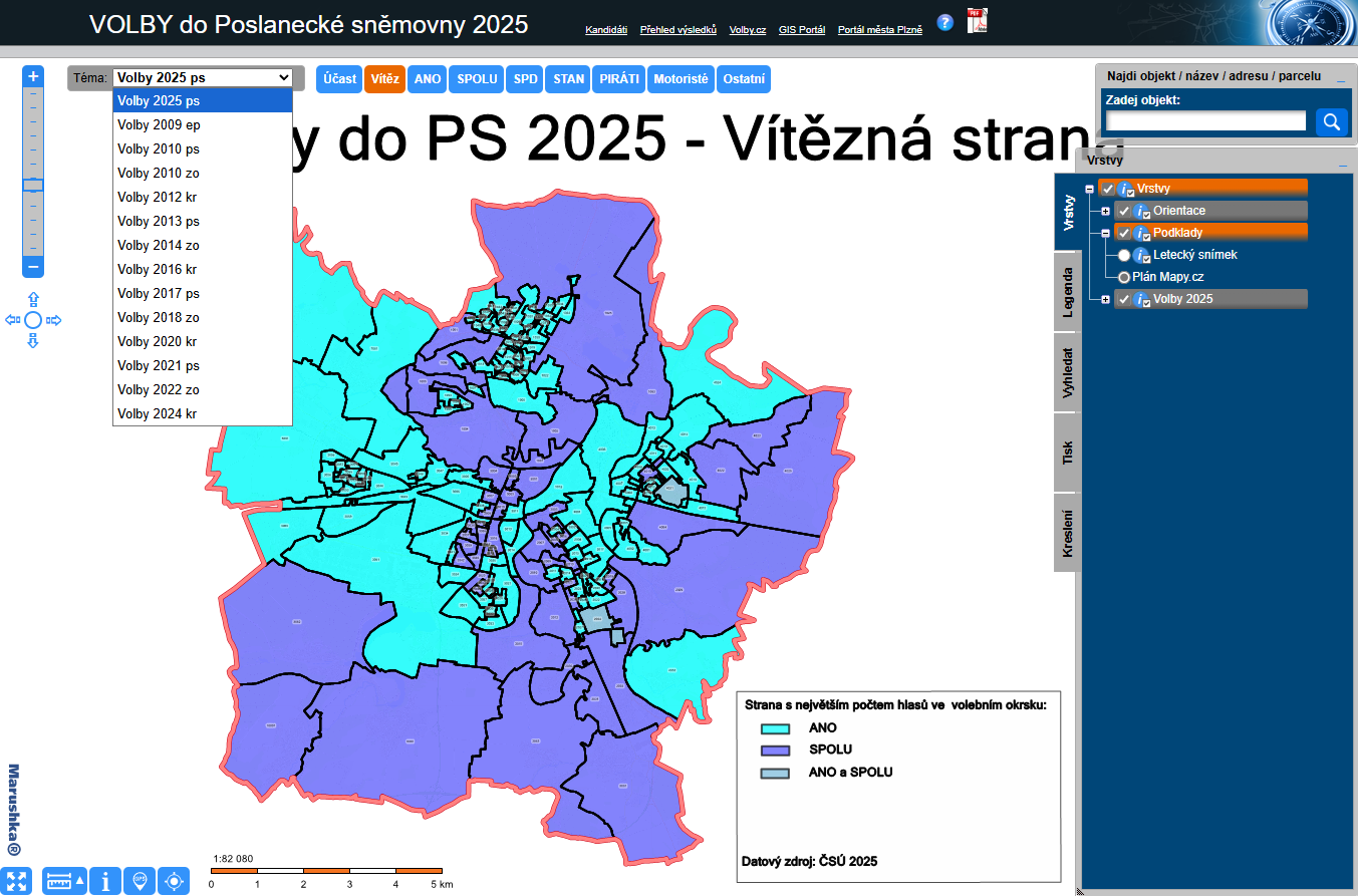 Prezentace výsledků voleb do Poslanecké sněmovny ČR konaných ve dnech 3. a 4. 10. 2025 na území města ve formě kartogramů a nad interaktivní mapou.