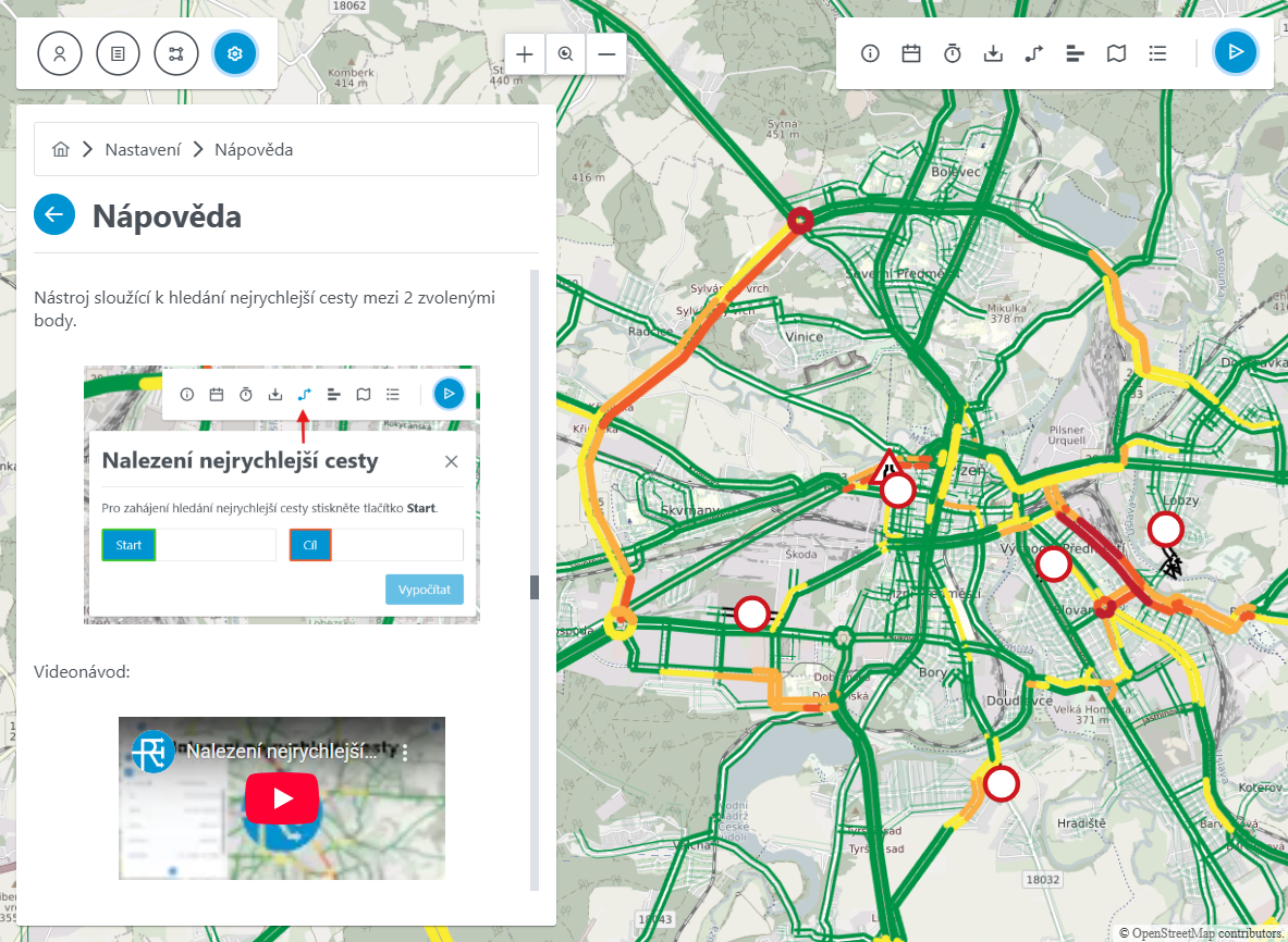 Všechny informace o ovládání aplikace jsou zpracované v Nápovědě aplikace, která je umístěná v Nastavení (ikona „ozubeného kola“ v levém horním rohu aplikace) v oddíle „Ostatní“. Součástí nápovědy jsou instruktážní videa ukazující jednotlivé postupy například pro validaci a kalibraci dopravního modelu, ale také návody pro ovládání aplikace pro veřejnost, jako například zobrazení dopravních dat, dopravních omezení, nalezení nejrychlejší cesty apod.