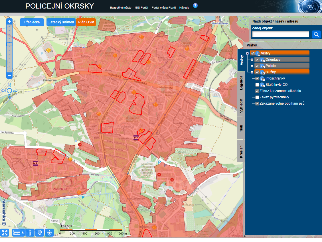 - Policejní okrsky (ve vrstvách v kategorii Služby).